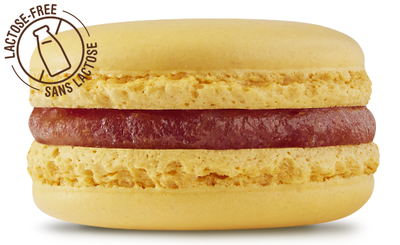 Coquille: Sucre, Amande en poudre, Blanc d’œuf liquide, Amidon de maïs, Eau, Bêta-carotène. Intérieur: Jus de citron, Citron entier, Sucres (sucre, glucose), Pommes séchées, Pectine.